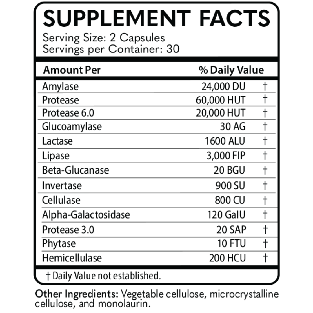 Digestive enzymes are crucial to help support the breakdown of proteins, fats, carbohydrates, and fibers. This comprehensive blend is formulated to help optimize digestion and assist the absorption of a wide variety of foods.*