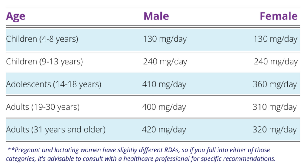 (RDA) for magnesium can vary depending on age and sex