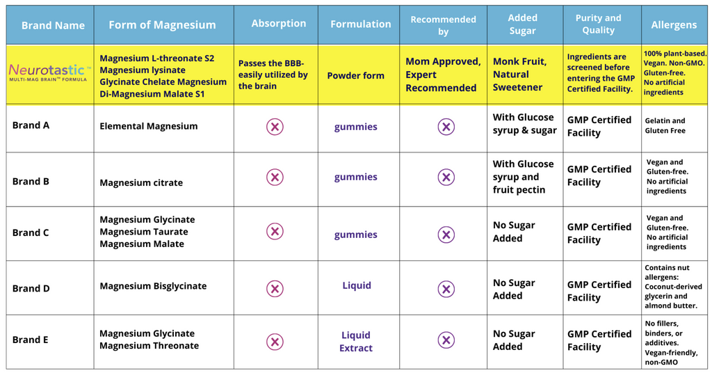 Neurotastic™ Multi-Mag Brain™ Formula Compared to Other Brands